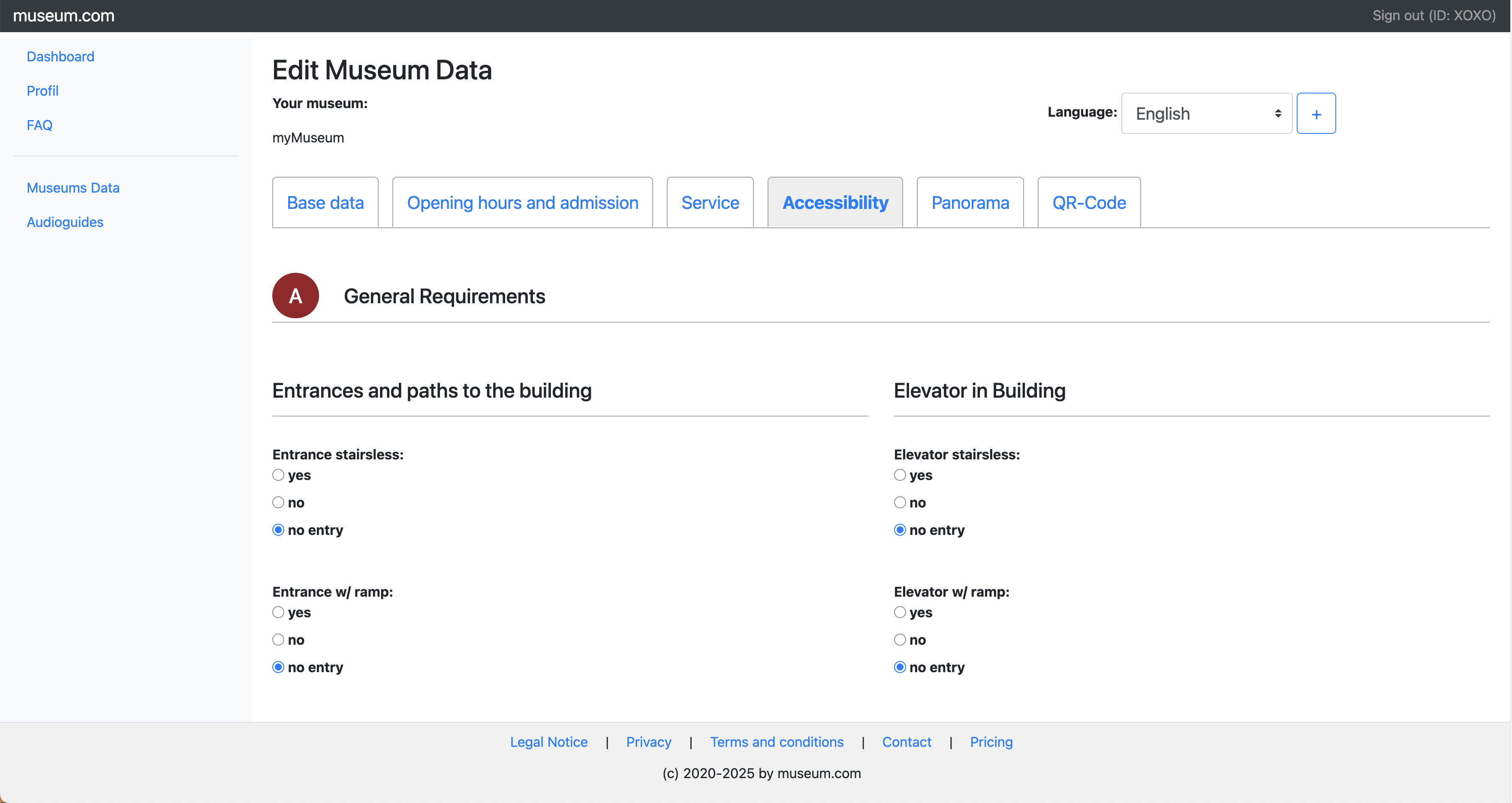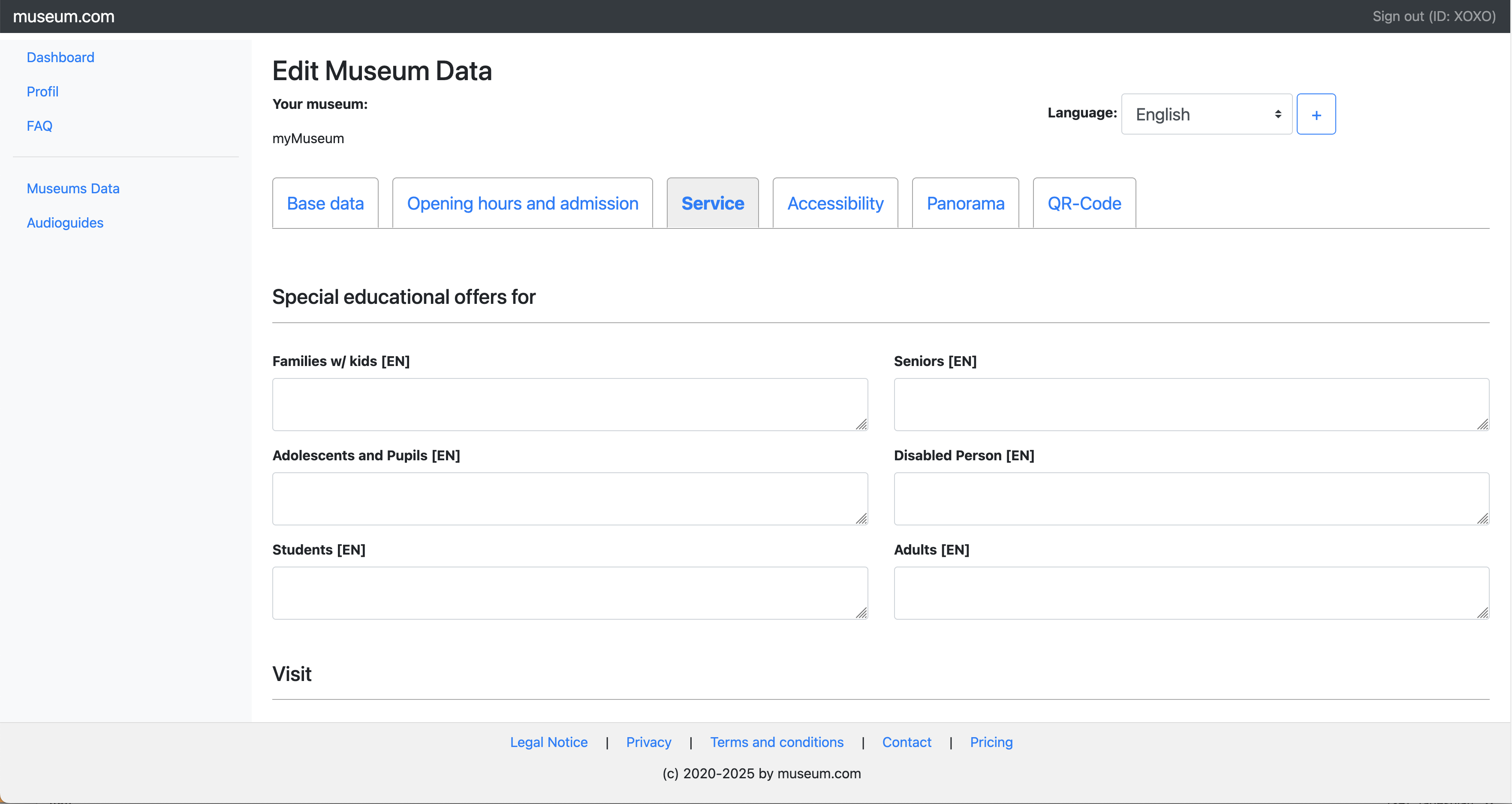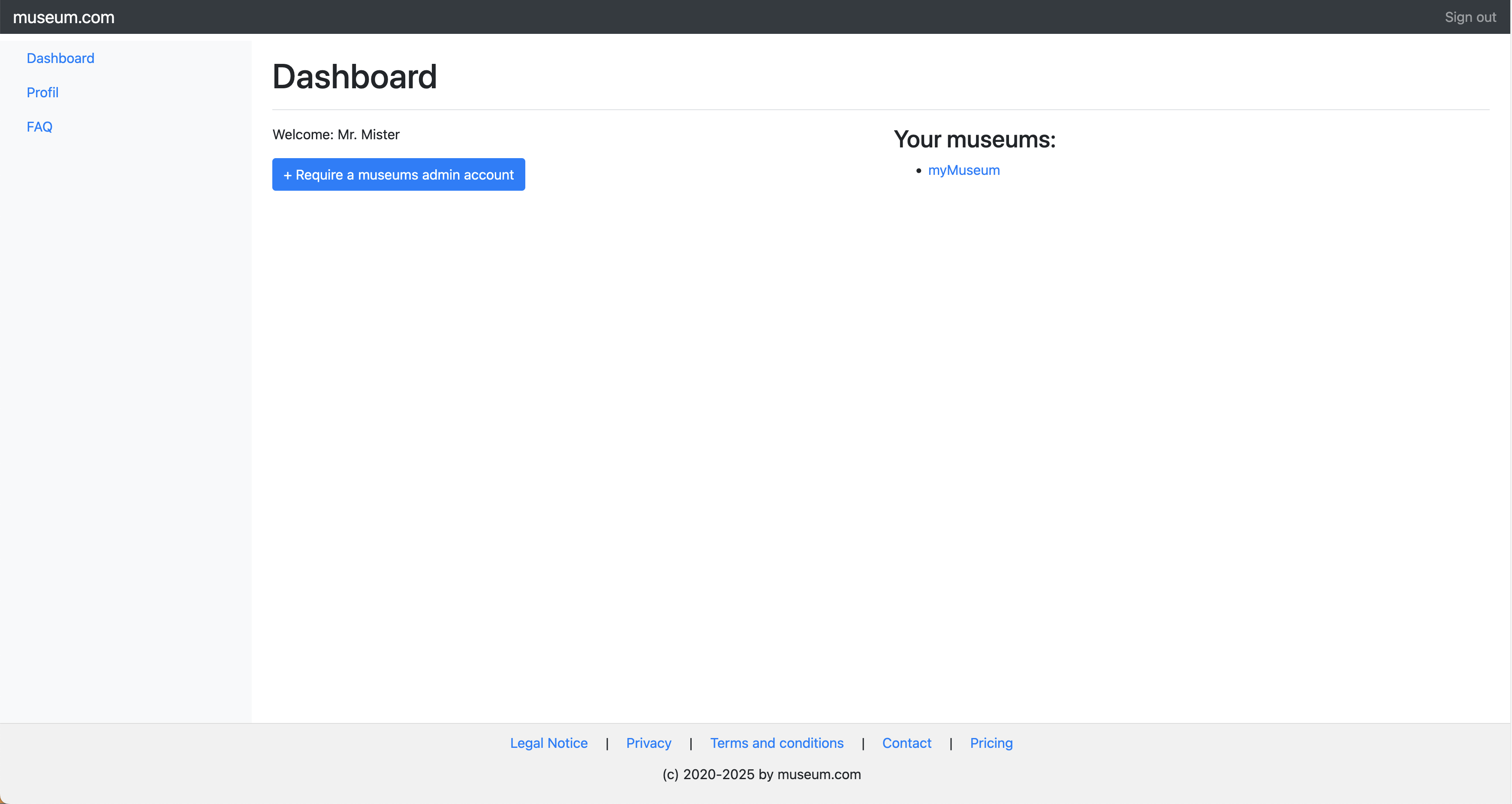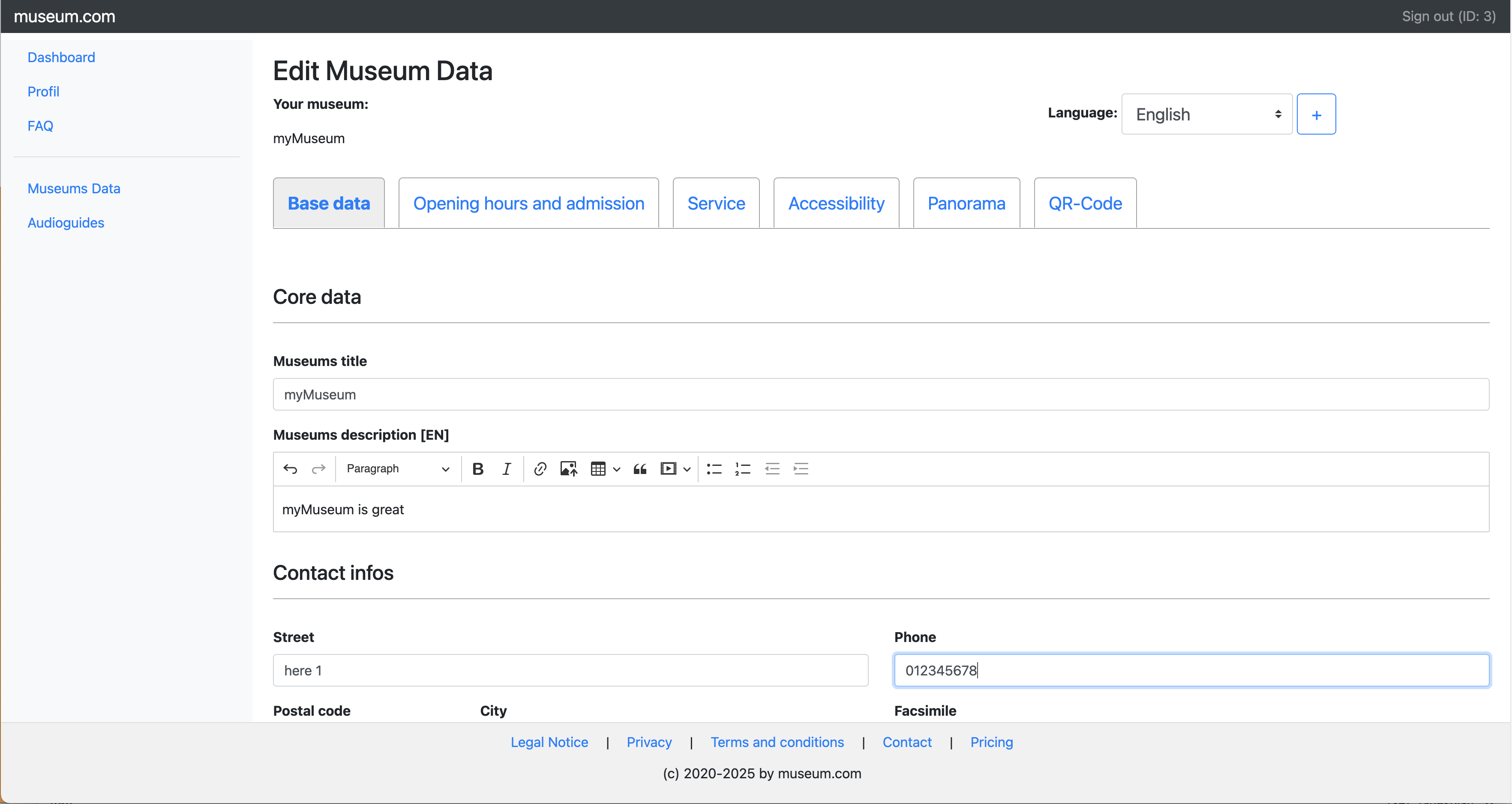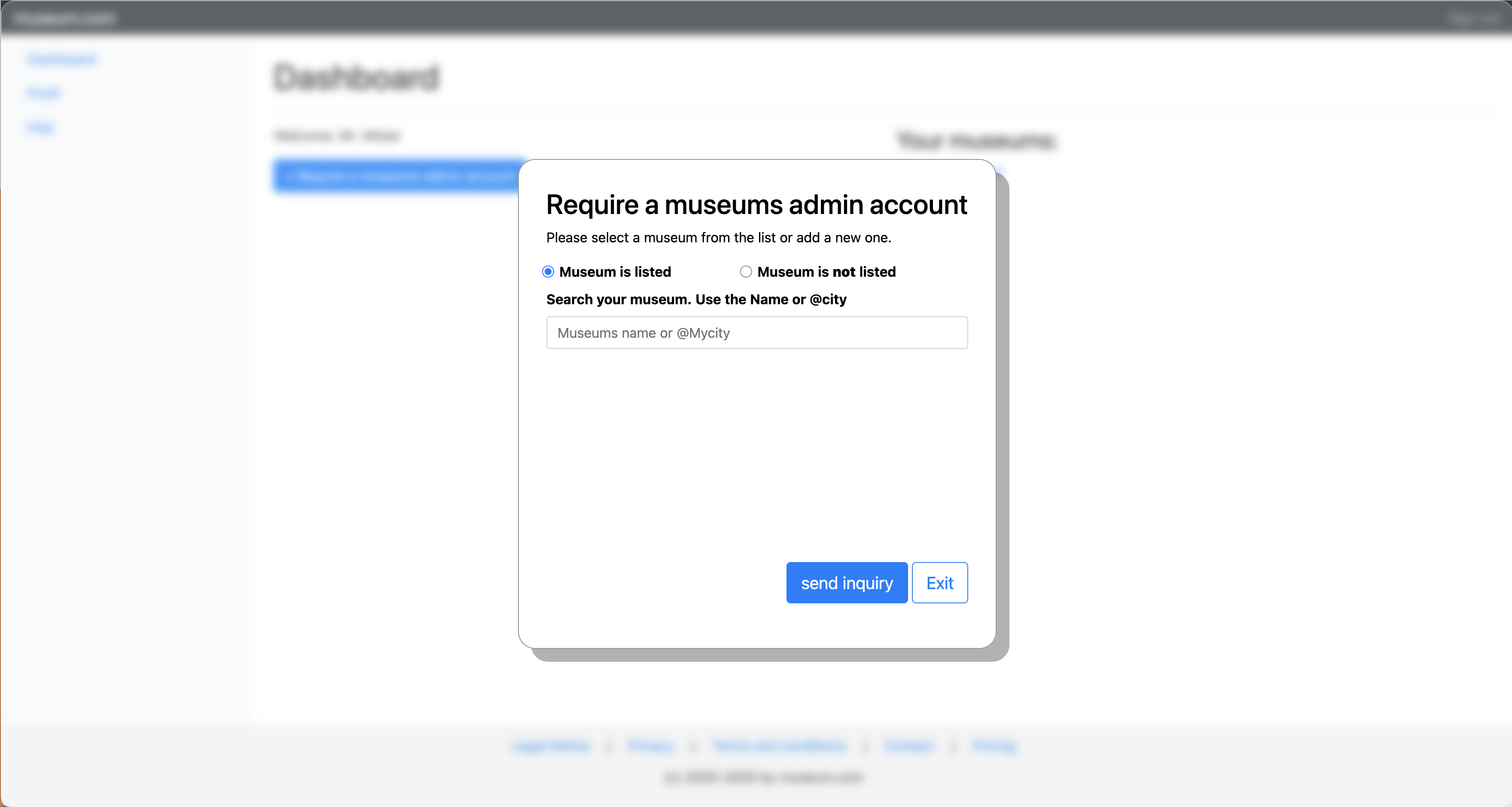 Select your museums entry to manage. You can require more museums.