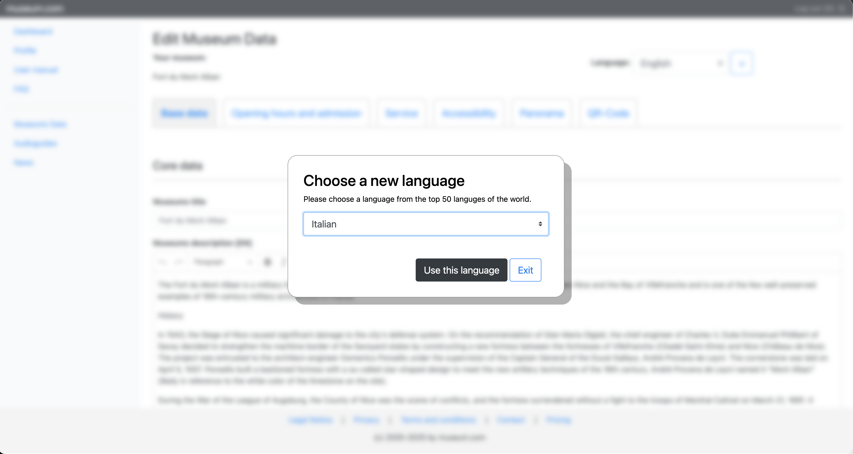 Choose one or more additional language for your museum.