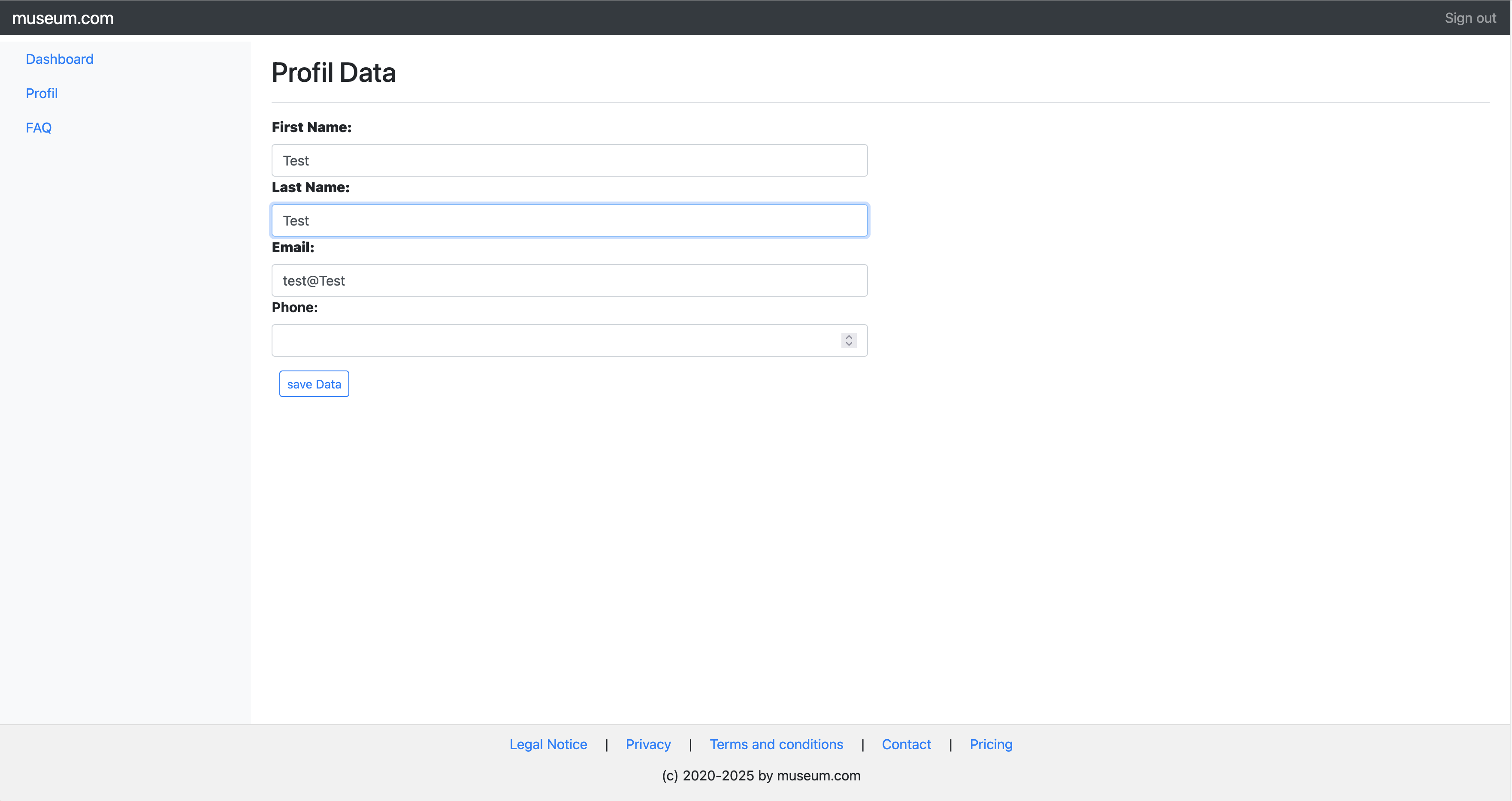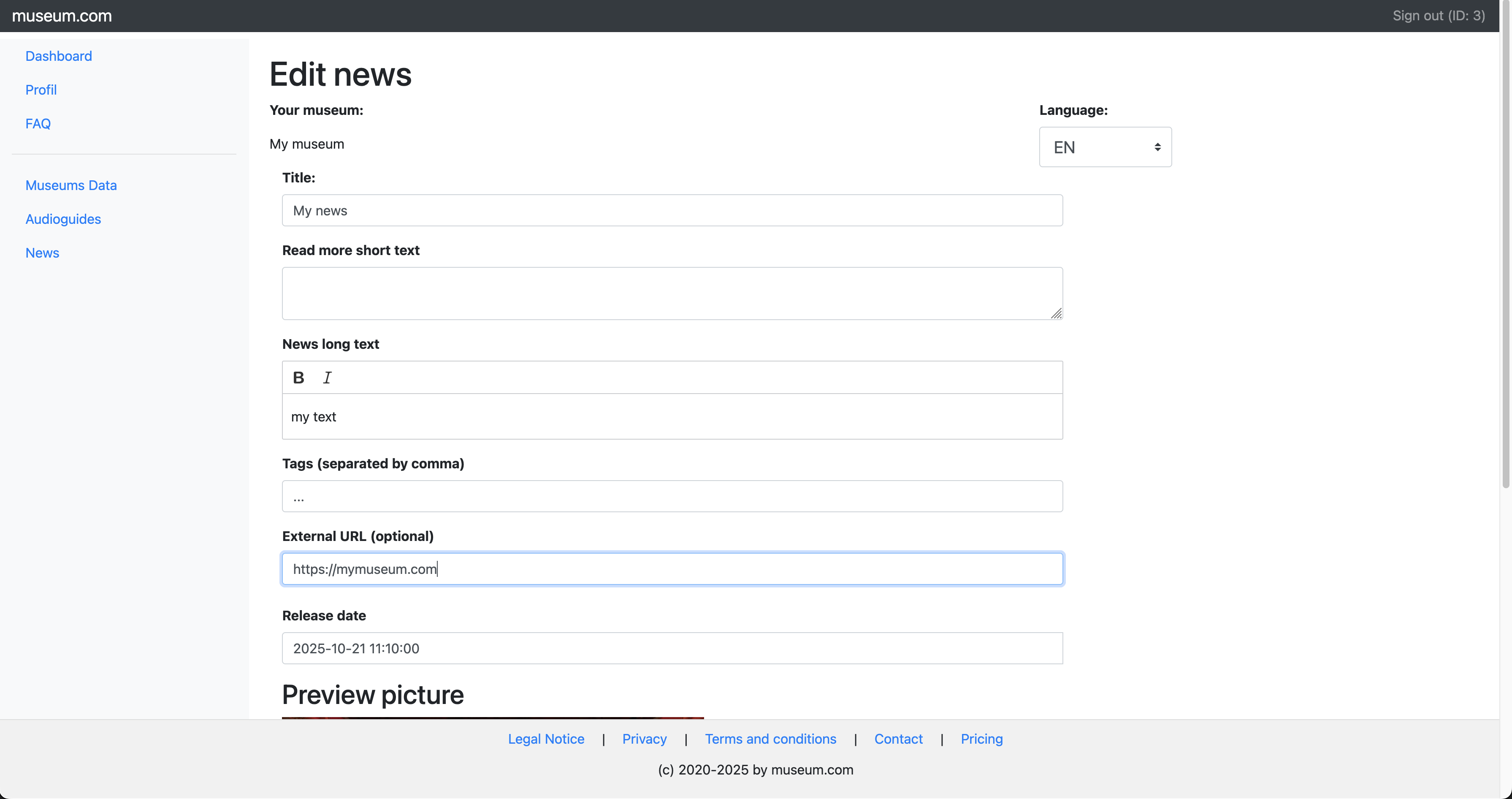 Edit the museum credencials.