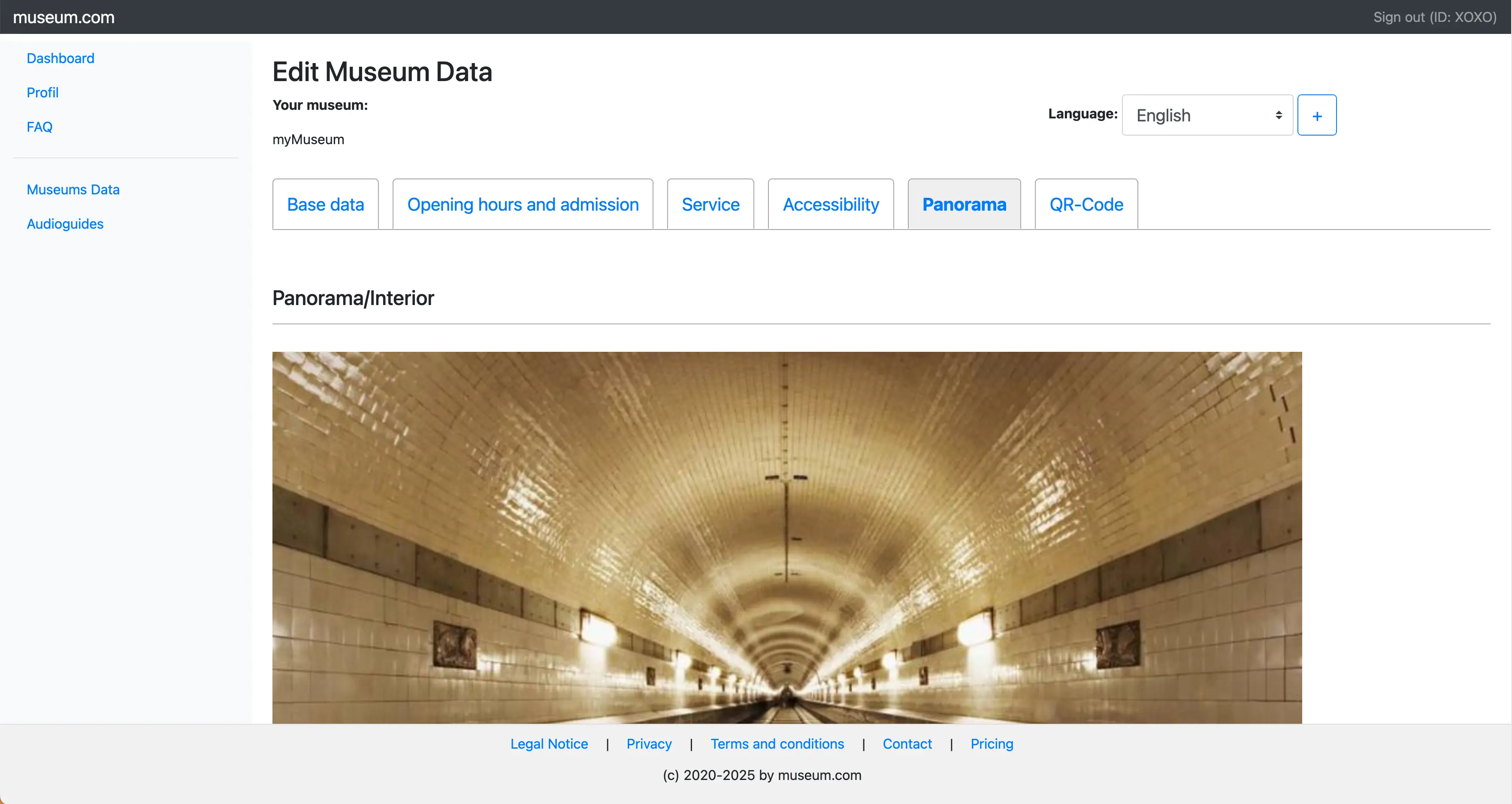 Upload a panorama photo (1200x900px) and the museums logo.